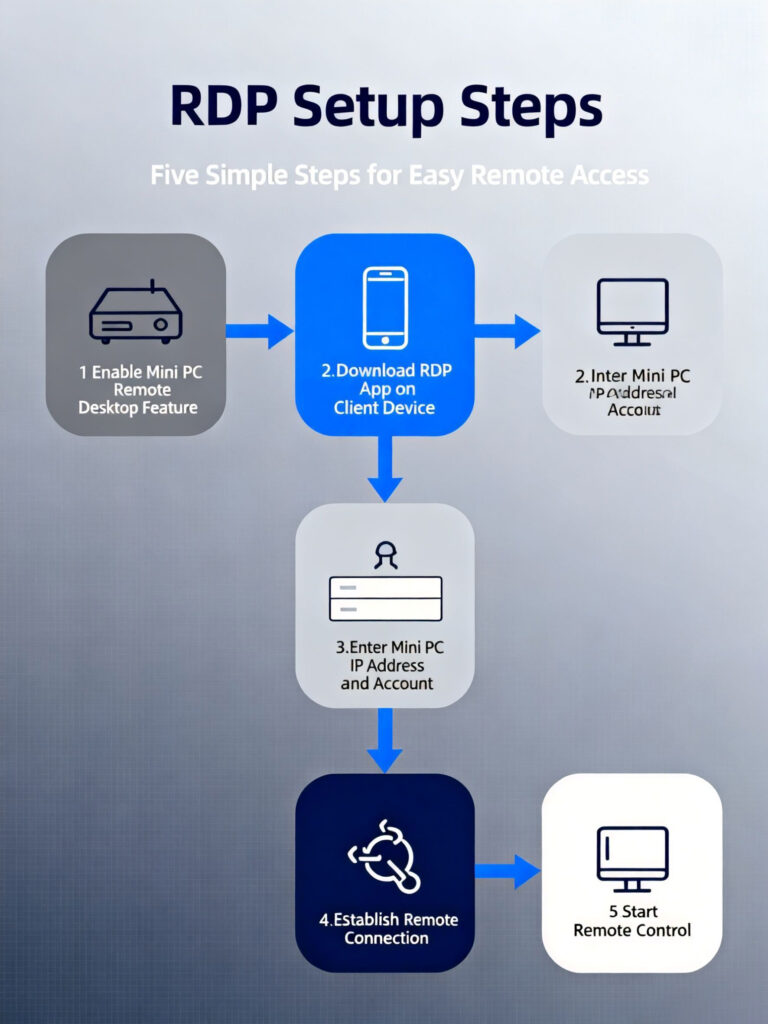 RDP technology breaks the chains of traditional computing, letting you access your digital workspace from anywhere. When paired with a Mini PC—energy-efficient, powerful, and space-saving—this combination creates the ultimate flexible computing solution.