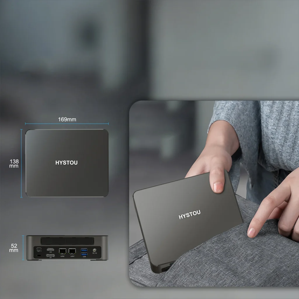Office Productivity: From general office workstations to specialized roles like graphic design and financial analysis, HYSTOU-M9 delivers desktop performance in a space-saving design, making it an ideal office mini PC.