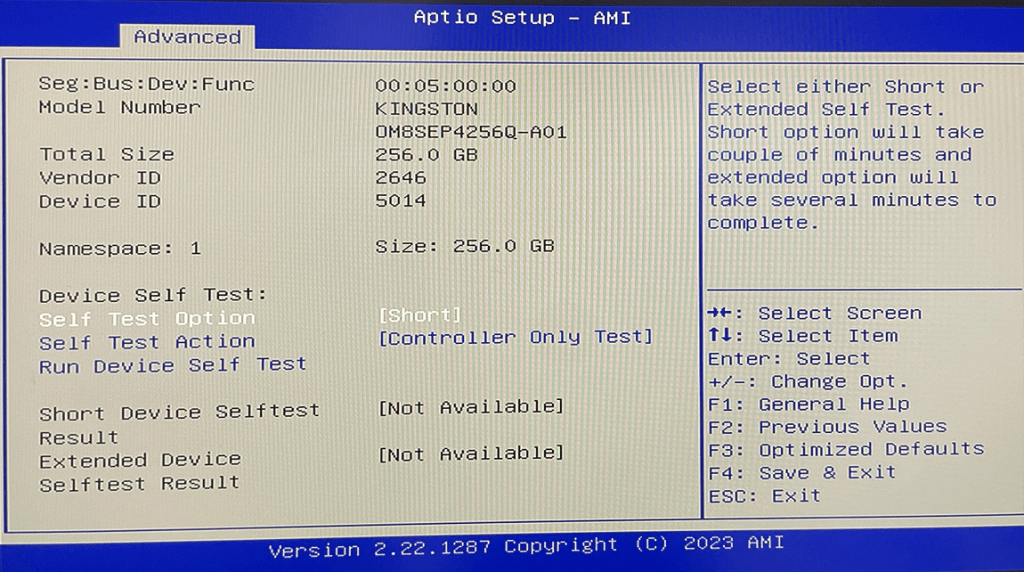 Hit Enter again to query NVME details (e.g., Model Number, Total Size, etc.).