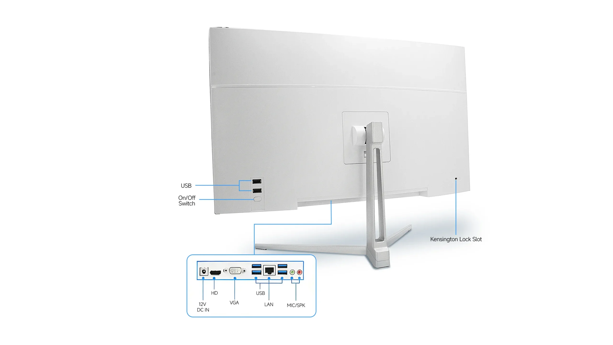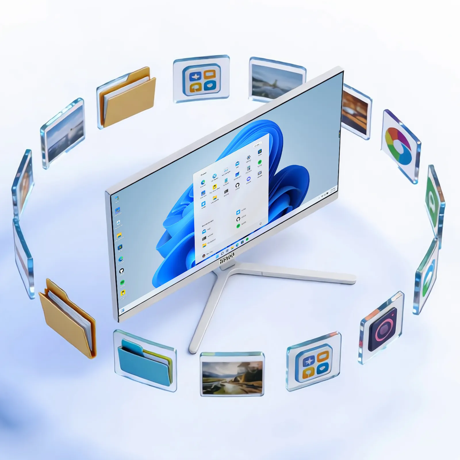 Featuring a slim, streamlined chassis and a detachable V-shaped stable base, it delivers a clean, uncluttered desktop setup while blending sleek lines with functional beauty—perfect for elevating the aesthetic of any office or commercial workspace.