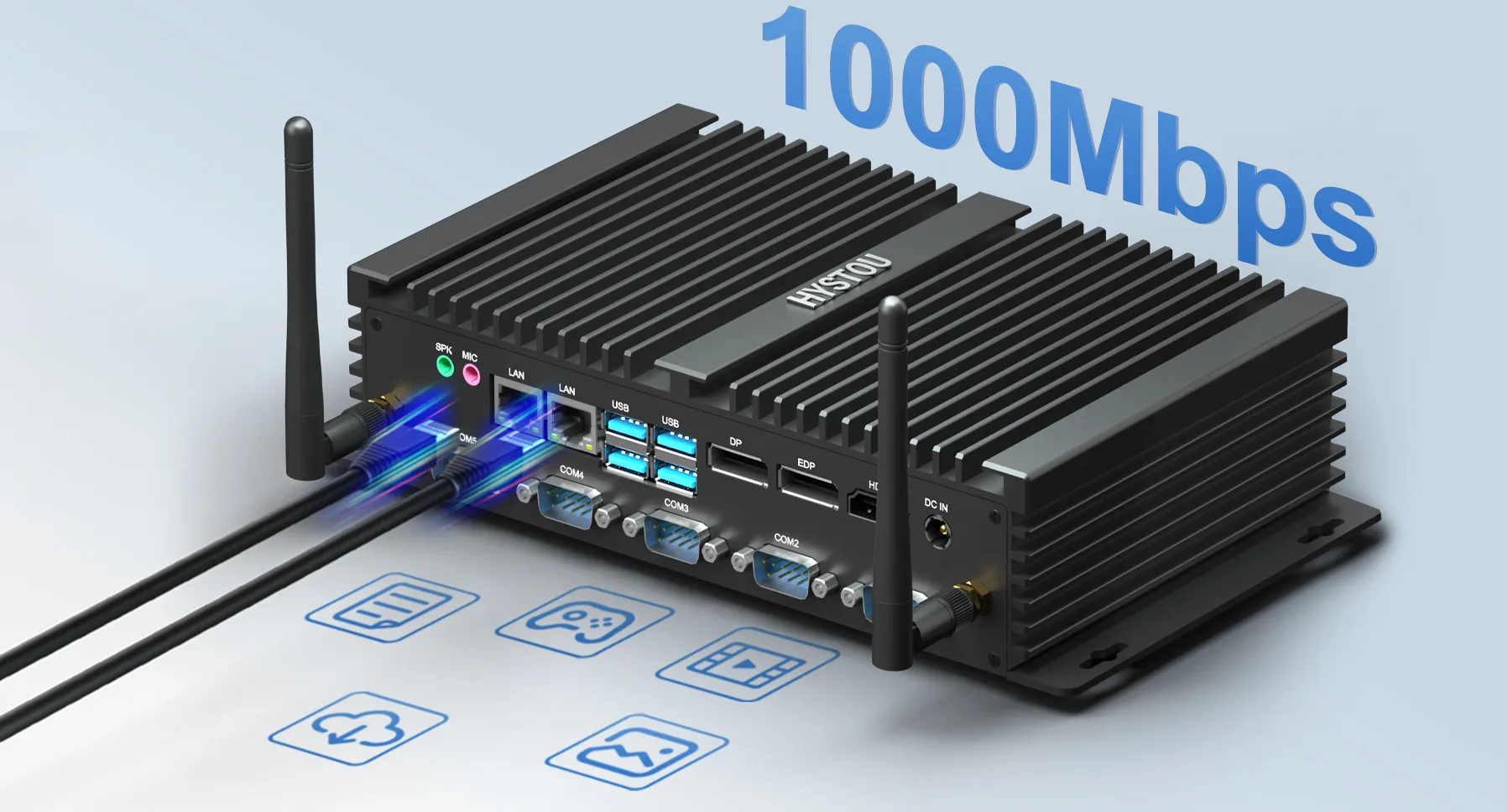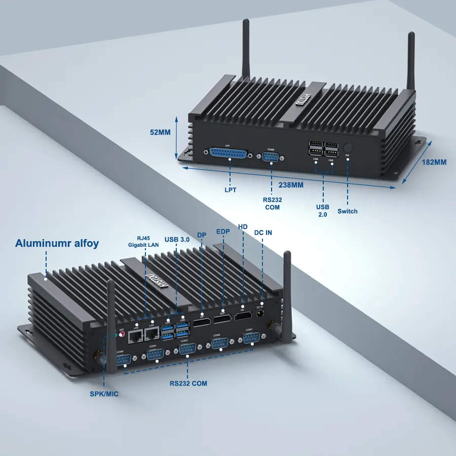 Industrial Fanless Mini PC with 6 COM Ports | HYSTOU H4 Triple Display