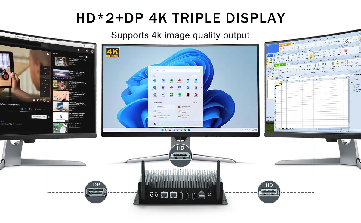 Powered by Intel UHD Graphics, the HYSTOU H6 delivers 4K UHD video playback at 4096×2160@60Hz with smooth image processing. Triple-display support transforms your workflow: edit videos across multiple screens, host immersive video conferences, or enjoy theater-quality streaming at home. Perfect for visual creators, remote workers, and home entertainment enthusiasts.