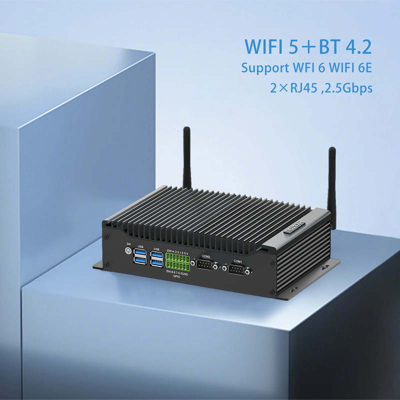 Our fanless Mini PC features advanced passive cooling technology, dissipating heat efficiently via large-area heat sinks. Dense heat fins are visible on the top and sides of the chassis—these fins maximize air contact area to boost cooling performance. Additionally, the case is crafted from specialized thermal conductive material, which rapidly transfers internal heat to the exterior for reliable, effective heat management.