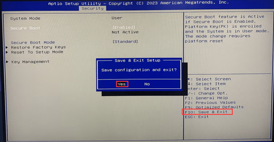 - Configure Secure Boot as [Enable], press F10 to save and exit.