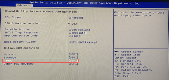 2, into the BIOS, select Advanced>CSM Configuration>Video configuration [UEFI], Boot Option filter configuration [UEFI only];